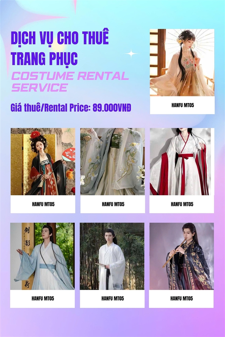 Giá thuê trang phục: dao động từ 89.000 VNĐ/bộ.